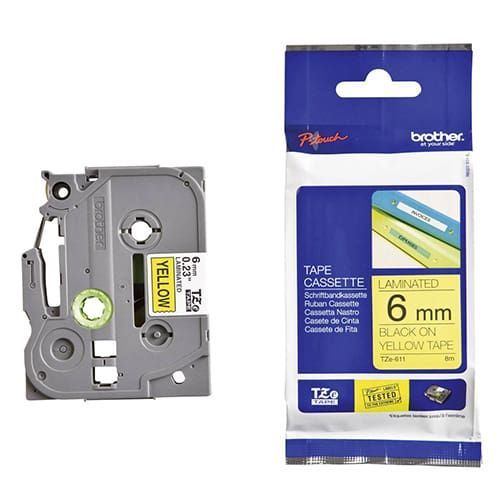 Compatible with a wide range of Brother’s P-touch printers, this genuine laminated TZe-611 labelling tape cassette is especially versatile thanks to its easy-to-read black and Yellow colour – so it comes in useful around the home, office and in other workplaces.